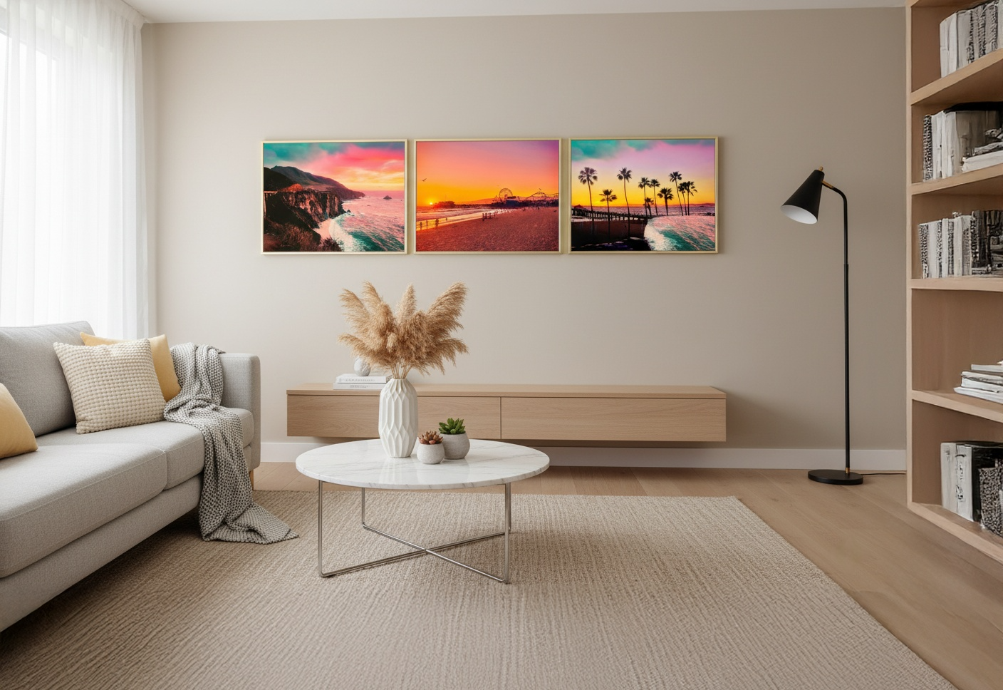 Discover the serene beauty of the coast reimagined through soft golden hues,...